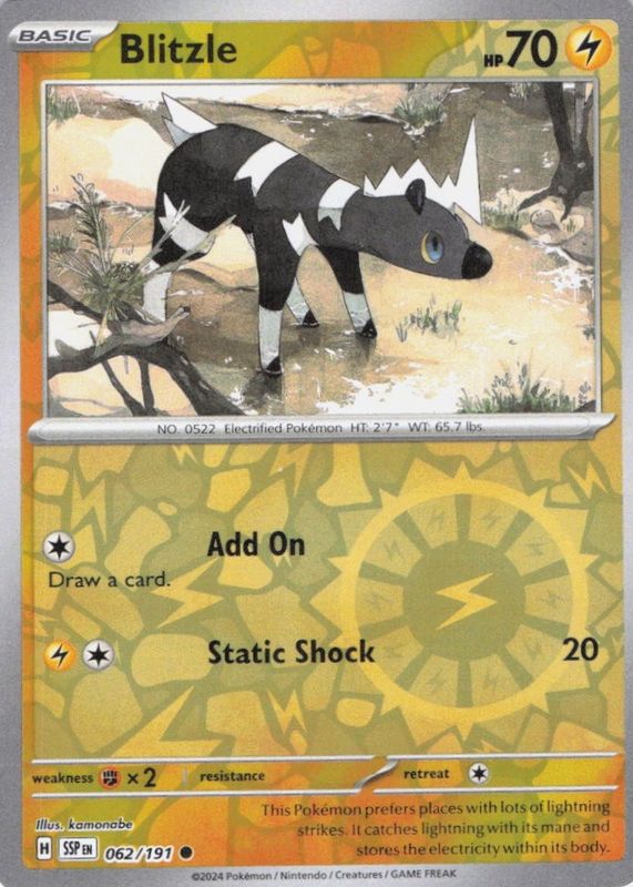 Blitzle 2024 Scarlet & Violet: Surging Sparks #062/191 Base RAW TCG (NEAR MINT) Price Guide