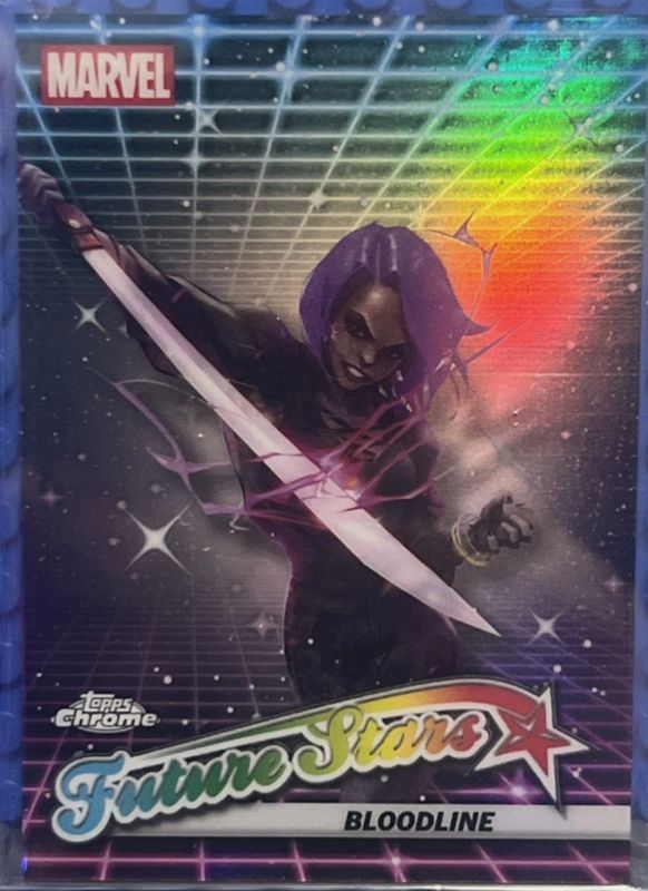 The Bloodline 2025 Topps Chrome #FS-5 Future Stars card is 1 of 29 Bloodline's card variations in the 2025 Topps Chrome set being tracked by Sports Card Investor, including Base, Refractor, Yellow Lava Refractor, Spider Web Refractor /399, and Blue Refractor /299.