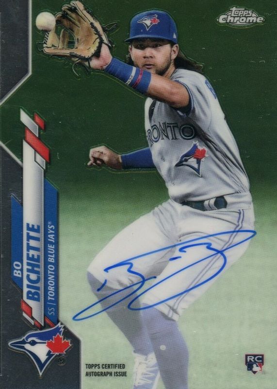 The Bo Bichette 2020 Topps Chrome #RA-BBI Rookie Auto card in Raw condition has moved up $20.99 (+25.0%) in the last 30 days and was last sold for $104.99 .