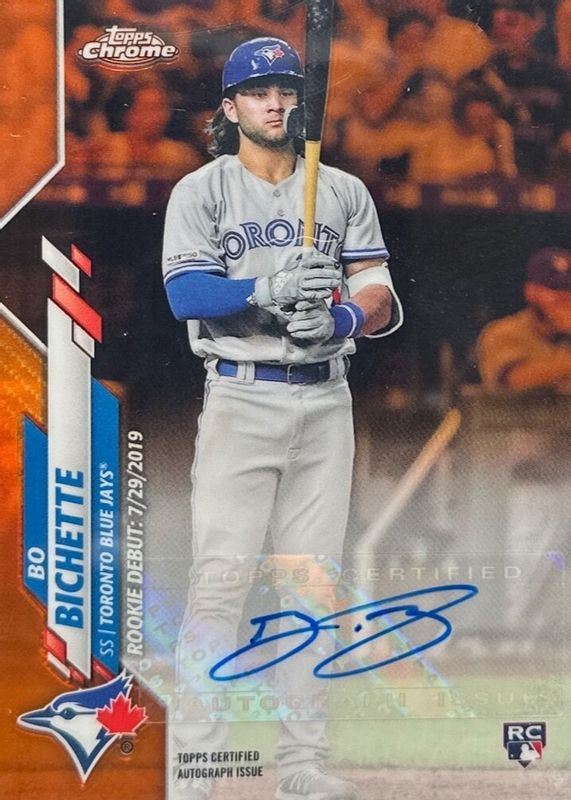 Best Prices Available For Sale of Bo Bichette 2020 Topps Chrome Update #RDUSA-BB Rookie Debut Autographs - Orange Refractor /25
