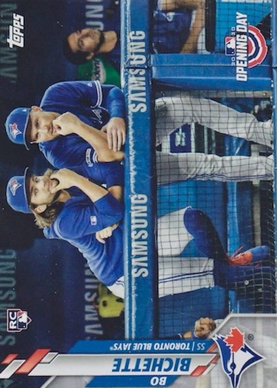 Auctions Ending Soon for Bo Bichette 2020 Topps Opening Day #173 SP Variation (At Dugout Fence) Rookie RAW