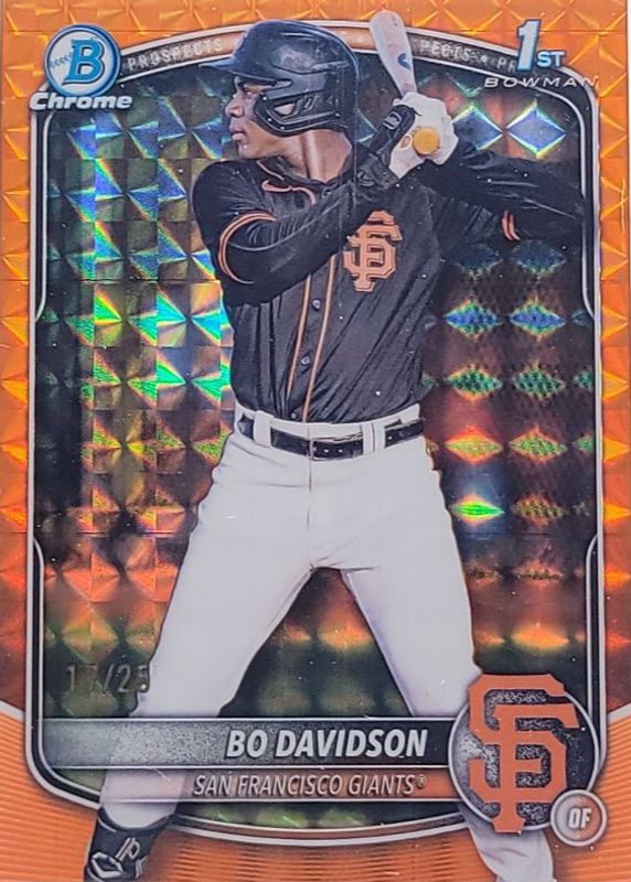 Auctions Ending Soon for Bo Davidson 2025 Bowman Chrome #BCP-206 Prospects - Orange Geometric Refractor /25 (1st) RAW