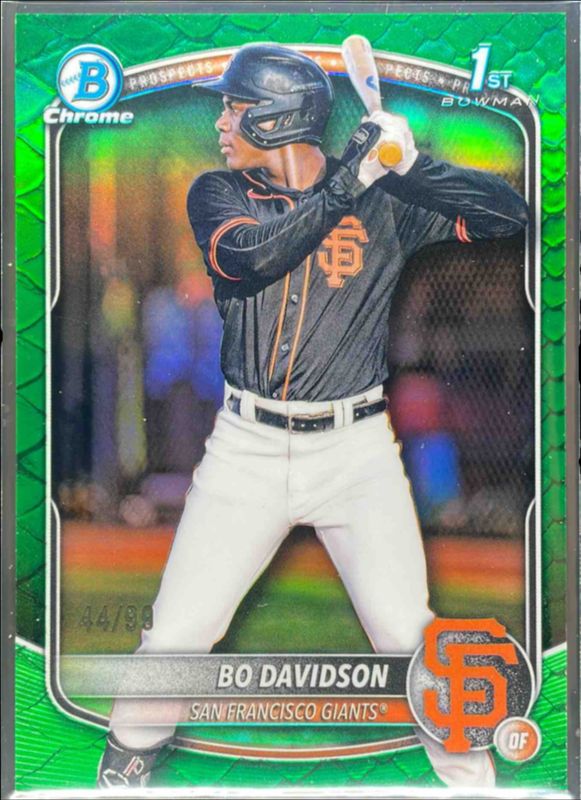 This card is 1 of 86 Bo Davidson's card variations in the 2025 Bowman Chrome set being tracked by Sports Card Investor, including Prospect Auto (1st), Prospect Auto - Black & White Shimmer Refractor (1st), Prospects (1st), Prospects - Mini-Diamond Refractor (1st), and Prospects - Shimmer Refractor (1st).