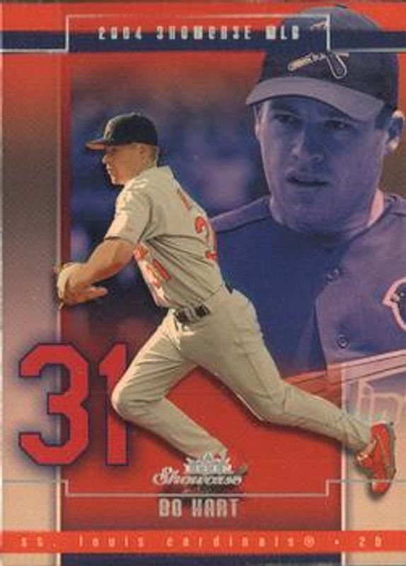 The Bo Hart 2004 Fleer Showcase #32 Base Rookie card is 1 of 4 Bo Hart's card variations in the 2004 Fleer Showcase set being tracked by Sports Card Investor, including Legacy Collection /99, Masterpiece Collection /1, and Sweet Sigs /224.