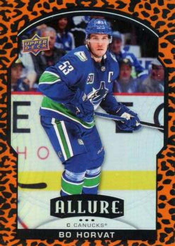 The Bo Horvat 2020 Upper Deck Allure #22 Leopard card is 1 of 31 Bo Horvat's card variations in the 2020 Upper Deck Allure set being tracked by Sports Card Investor, including Base, 2005 Shield, Black Rainbow, Blue China, and Magenta.