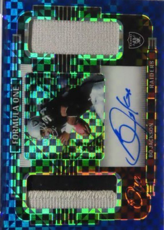 The Bo Jackson 2021 One #387 Formula One Autographs - Blue (/6) card in Raw condition has not changed in price in the last 30 days and was last sold for $333.00 .