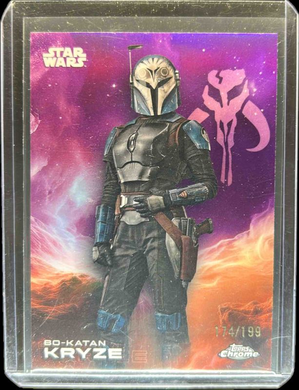 The Bo-Katan Kryze 2025 Topps Chrome Star Wars #10 Kamino Purple Refractor /199 card is 1 of 43 Bo-Katan Kryze's card variations in the 2025 Topps Chrome Star Wars set being tracked by Sports Card Investor, including Base, Black & White Shimmer Refractor, Blue Pulsar Refractor, Prism Refractor, and Purple Pulsar Refractor.