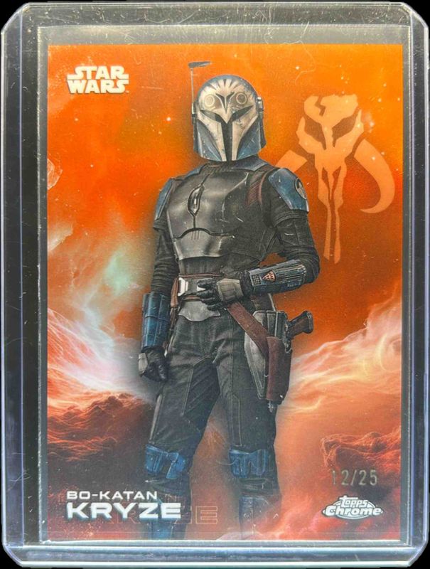 The Bo-Katan Kryze 2025 Topps Chrome Star Wars #10 Rebel Orange Orange Refractor /25 card is 1 of 43 Bo-Katan Kryze's card variations in the 2025 Topps Chrome Star Wars set being tracked by Sports Card Investor, including Base, Black & White Shimmer Refractor, Blue Pulsar Refractor, Prism Refractor, and Purple Pulsar Refractor.