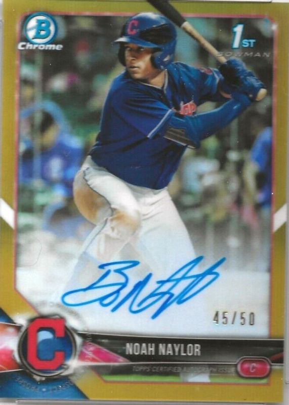 The Bo Naylor 2018 Bowman Draft #CDA-NN Chrome DP Auto - Gold Refractor /50 (1st) card in Raw condition has not changed in price in the last 30 days and was last sold for $78.77 .
