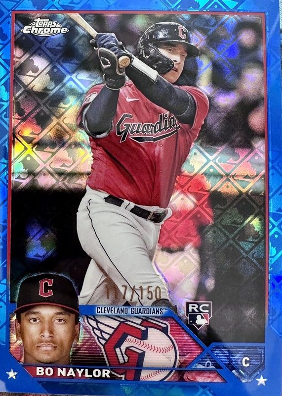BO NAYLOR 2023 Topps Chrome Logofractor Blue #96/150 Guardians Rookie RC