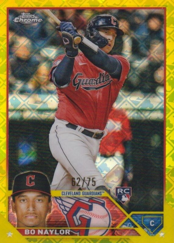 BO NAYLOR 2023 Topps Chrome Logofractor YELLOW Refractor RC - Guardians #34/75