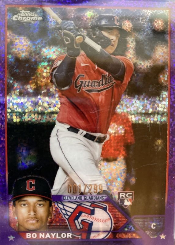 2023 Topps Chrome Bo Naylor Purple Speckle Refractor Rookie /299 54 Guardians RC