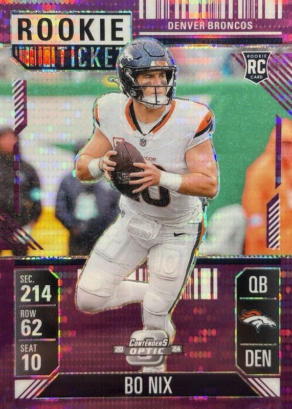 2024 Contenders Optic FOTL Bo Nix #62 Rookie Ticket Purple Pulsar /37 Broncos