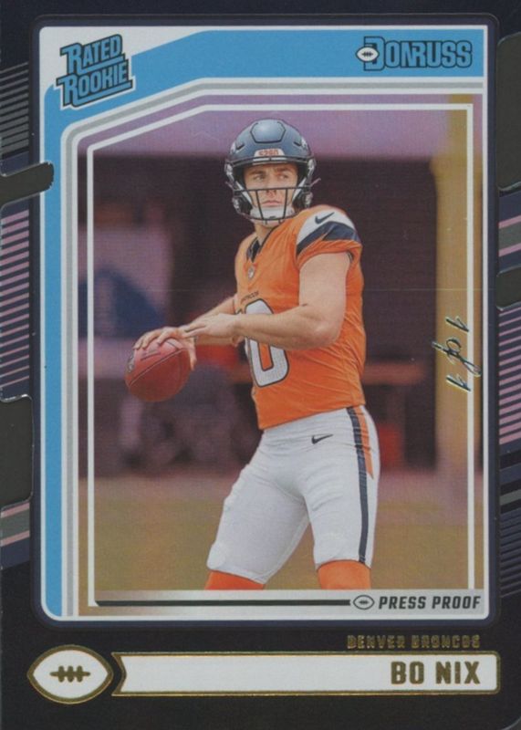 Bo Nix 2024 Donruss #369 Press Proof Black Die-Cut /1 Rookie RAW Price Guide