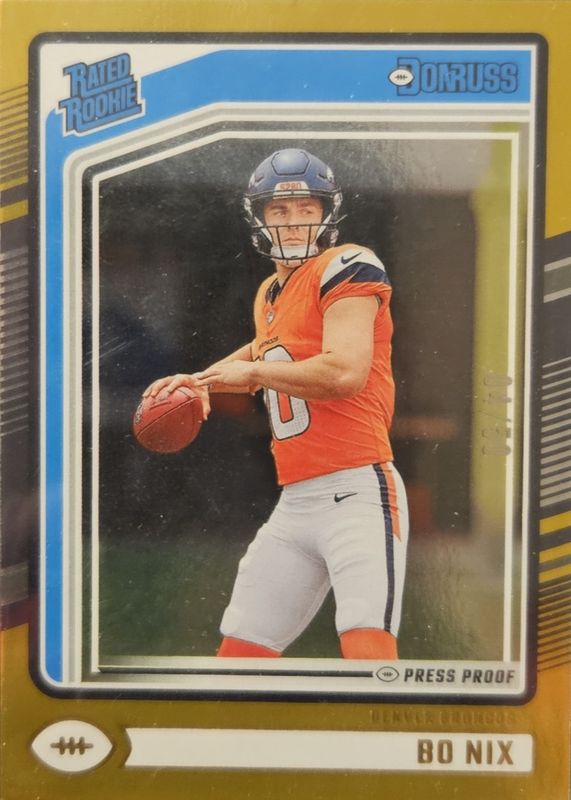 GOLD BO NIX 18/50 2024 Panini Donruss Press Proof Rated Rookie, Broncos SP