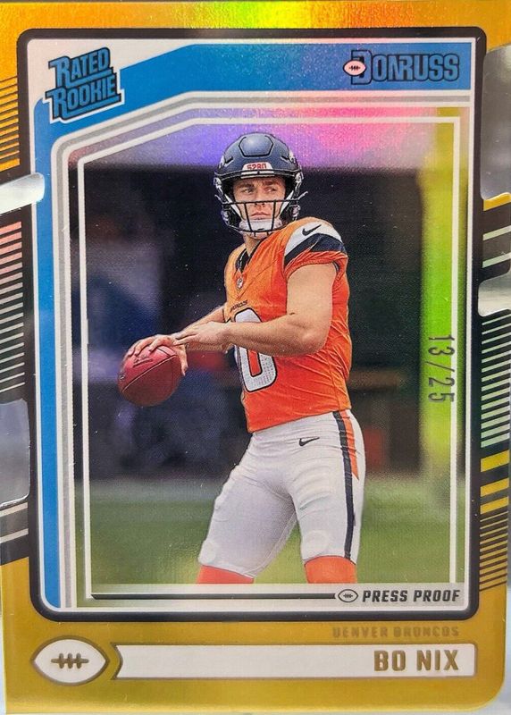 2024 Donruss Rated Rookie #369 Bo Nix Press Proof Gold Die-Cut /25 Broncos RC 📈