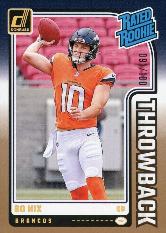 2024 Donruss Throwback #46 Bo Nix Broncos RC Rated Rookie 81/100