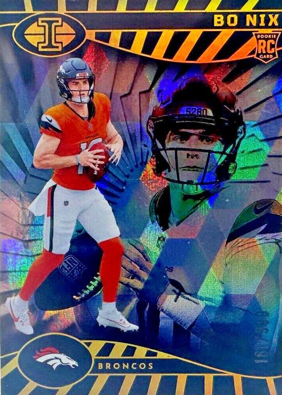 This card is 1 of 25 Bo Nix's card variations in the 2024 Illusions set being tracked by Sports Card Investor, including Base, Retail, Trophy Collection Dots, Trophy Collection Emerald, and Trophy Collection Galactic.