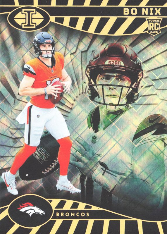 Bo Nix 2024 Panini Illusions Yellow Diamond Trophy Collection #22 Denver Broncos