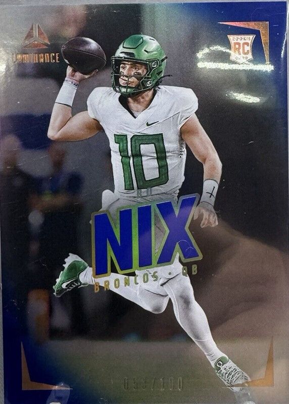 This card is 1 of 22 Bo Nix's card variations in the 2024 Luminance set being tracked by Sports Card Investor, including Horizontal Rookies, Vertical Rookies, Horizontal Rookies - Gold /299, Vertical Rookies - Gold /299, and Horizontal Rookies - Purple /175.
