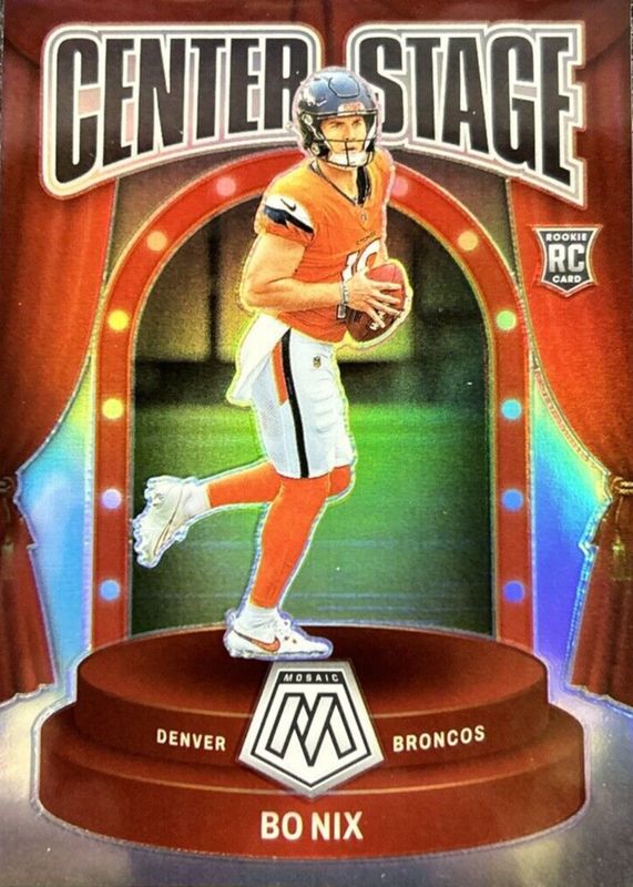 2024 Panini Mosaic Bo Nix Center Stage #12 RC Silver Prizm Denver Broncos