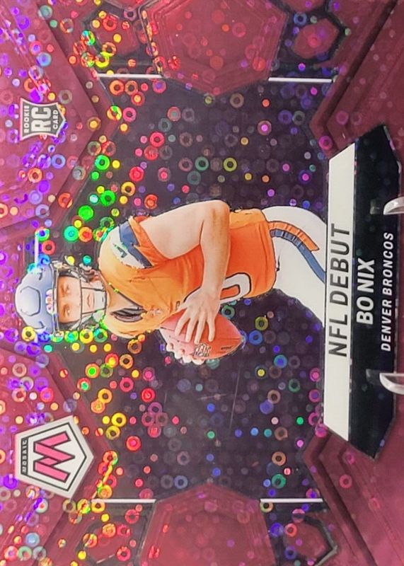 Recent Sales of Bo Nix 2024 Mosaic #271 NFL Debut - No Huddle Pink /20 Rookie Raw