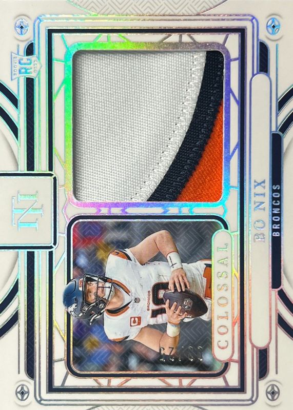 Bo Nix 2024 National Treasures #CM-BNX Colossal Materials - Prime Holo Silver /25 Rookie RAW Price Guide