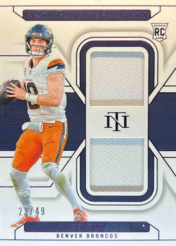2024 National Treasures NFL Bo Nix Dual Patch Rookie Card Purple 25/49! HOT!!