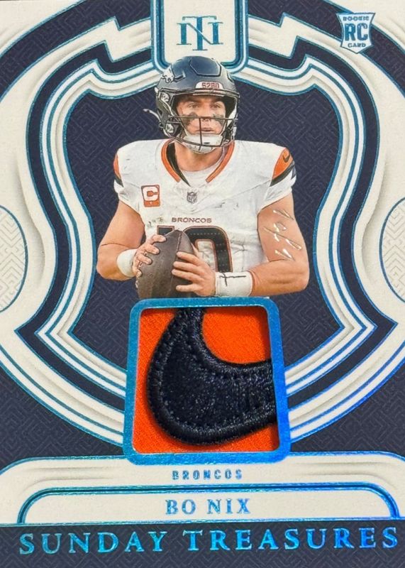 Bo Nix 2024 National Treasures #ST-BNX Sunday Treasures - Brand Logo /1 Rookie RAW Price Guide