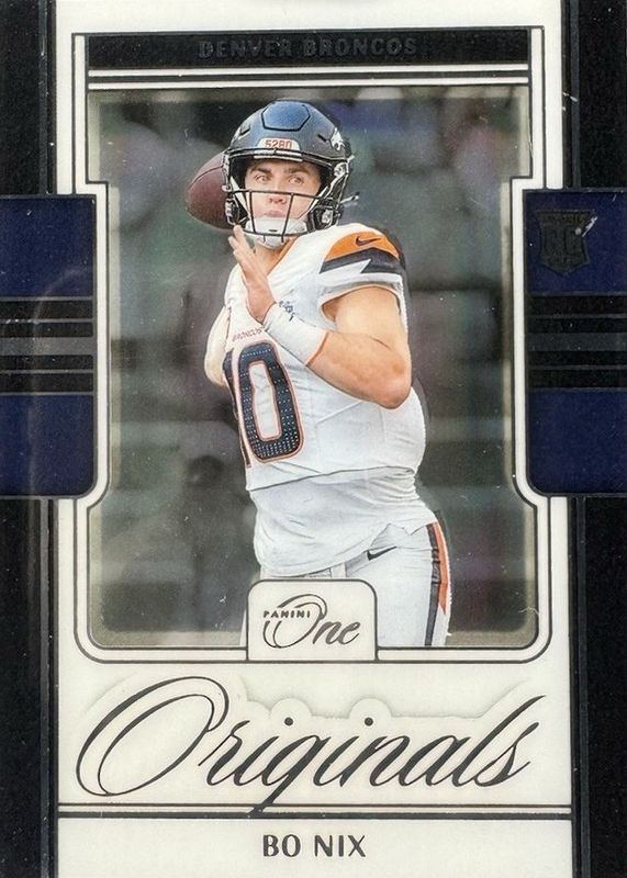 The Bo Nix 2024 One #OO-BNX One Originals Rookie card in Raw condition has not changed in price in the last 30 days and was last sold for $50.00 .