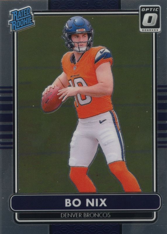The Bo Nix 2024 Optic #6 2014 Retro Series Rookie card in Raw condition has moved up $1.96 (+94.2%) in the last 30 days and was last sold for $4.04 .