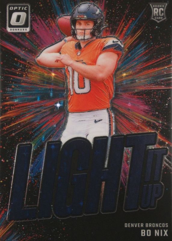 2024 Donruss Optic Bo Nix Light It Up Rookie #6 Purple Stars FOTL 20/25 Broncos