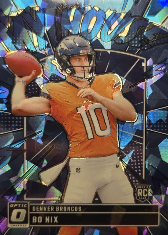 Bo Nix 2024 Optic #10 My House! - Ice /15 Rookie RAW Price Guide