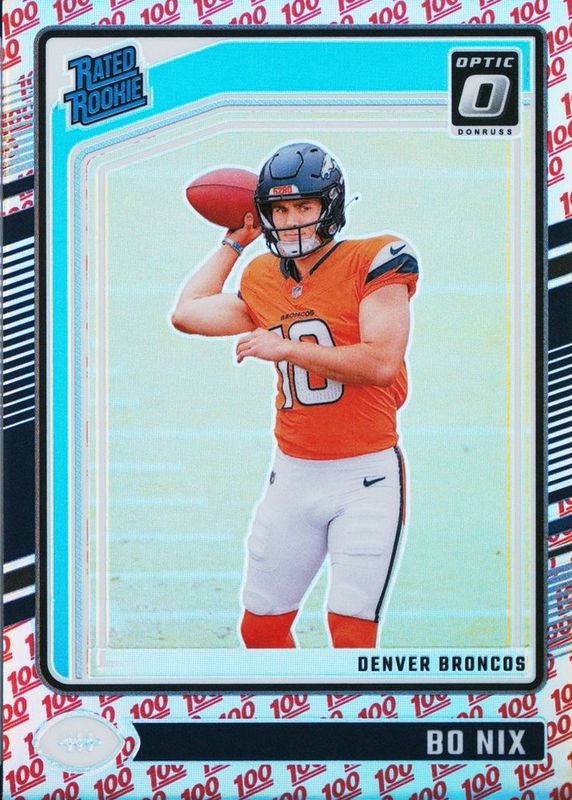 Bo Nix 2024 Optic #209 One Hundred /(SSP) Rookie RAW Price Guide