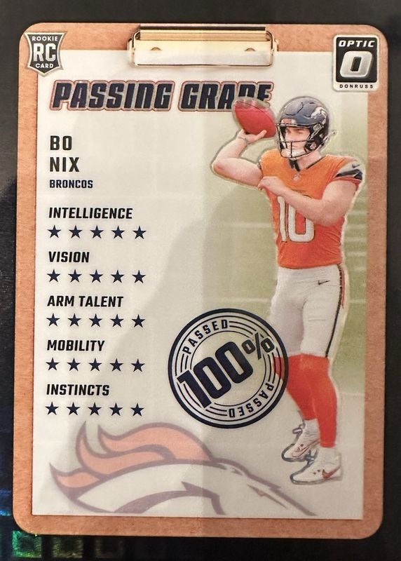 2024 Optic - Bo Nix Rookie Passing Grade Black Pandora /25 Denver Broncos RC