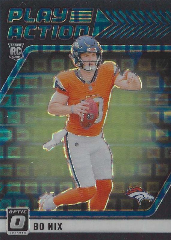 Best Prices Available For Sale of Bo Nix 2024 Optic #6 Play Action - Black Pandora /25