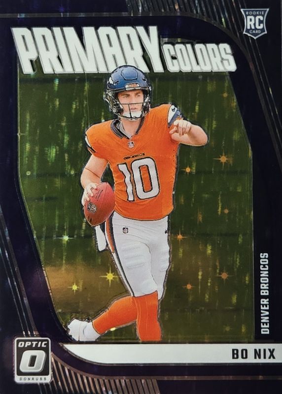 2024 Donruss Optic Bo Nix Primary Colors Purple Stars FOTL 10/25 # Match Rookie
