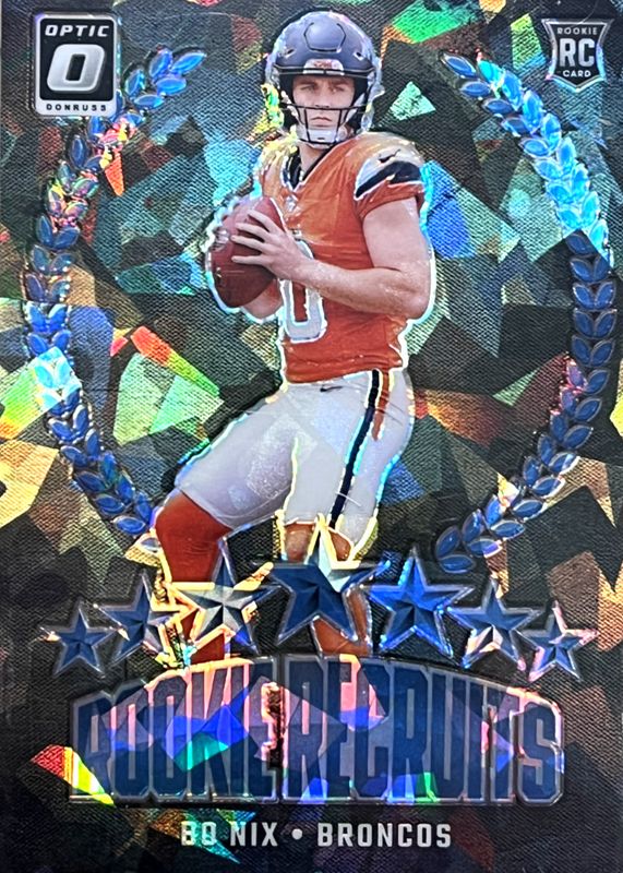 Bo Nix 2024 Optic #4 Rookie Recruits - Ice /15 RAW Price Guide