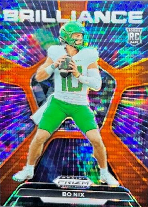Best Prices Available For Sale of Bo Nix 2024 Prizm Draft Picks #BR-BN Brilliance - Orange Pulsar /49
