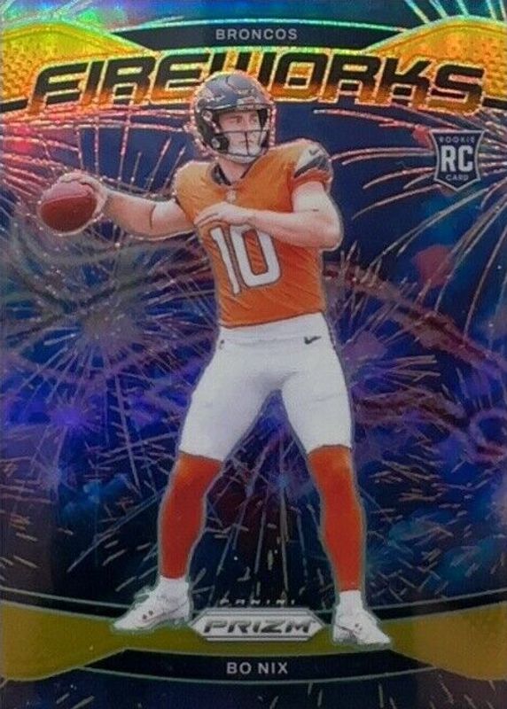 2024 Panini Prizm Bo Nix Fireworks Rookie Gold Prizm /10 RC Broncos