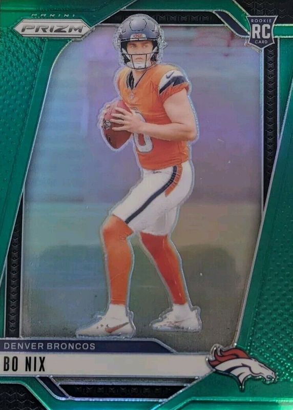 The Bo Nix 2024 Prizm #309 Green Rookie card in Raw condition has moved down -$0.50 (-2.8%) in the last 30 days and was last sold for $17.50 .