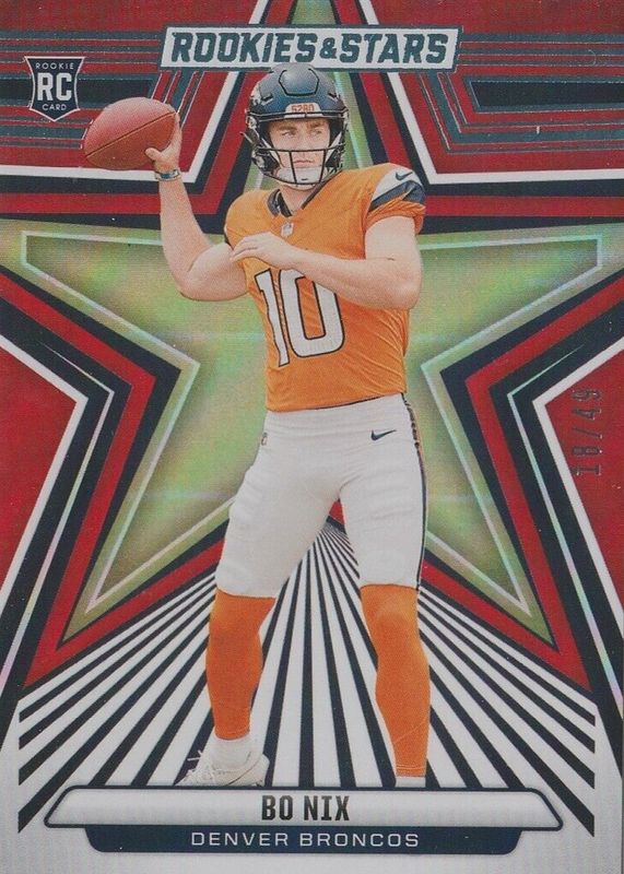 Bo Nix 2024 Rookies & Stars #108 Red & Blue /49 RAW Price Guide
