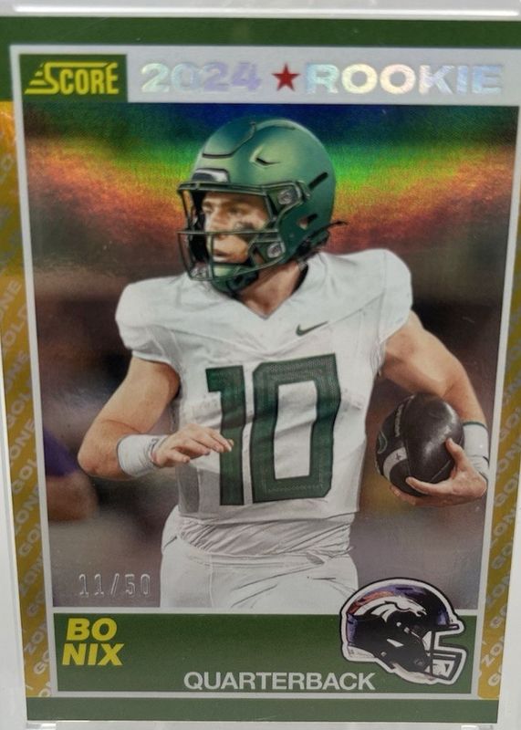 Bo Nix 2024 Score #9 35th Anniversary Rookie - Gold Zone /50 RAW Price Guide