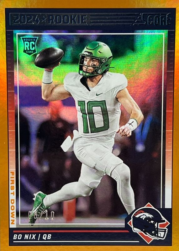 Bo Nix 2024 Score #332 First Down /10 Rookie RAW Price Guide