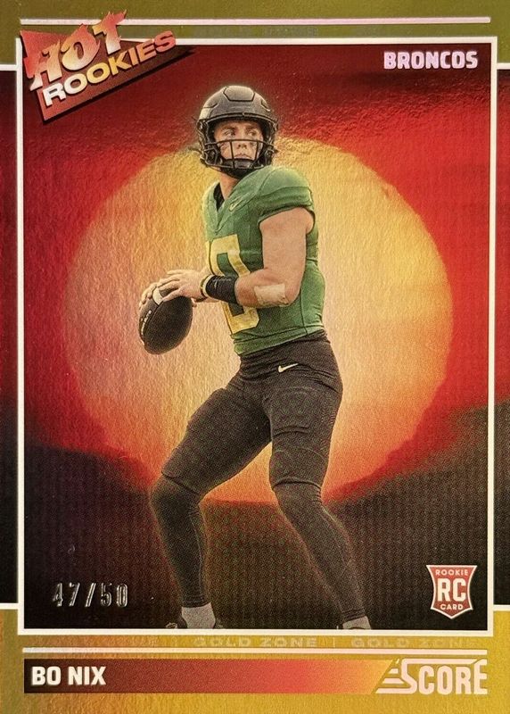 2024 Panini Score Bo Nix Hot Rookies RC Gold Zone Rookie #20/50 Broncos