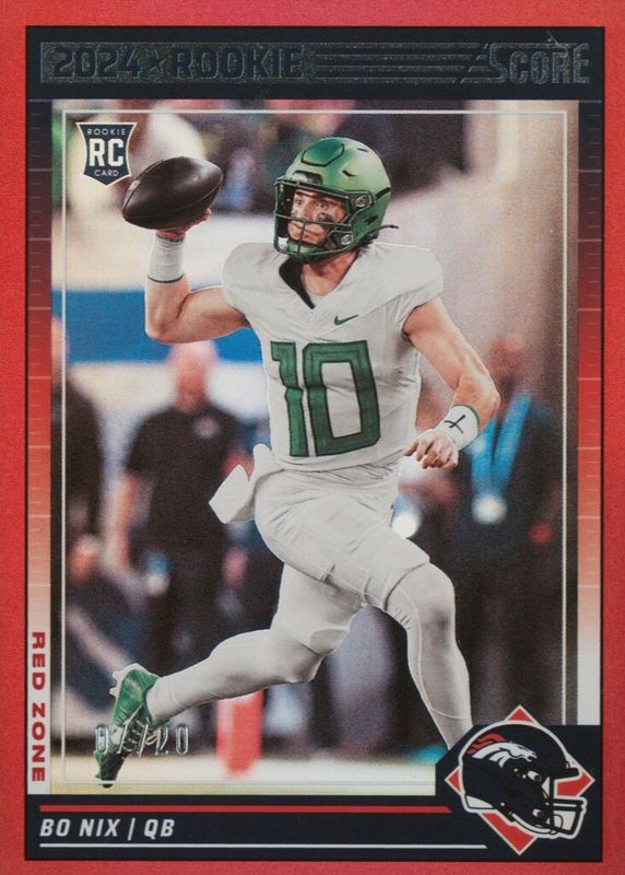 Bo Nix 2024 Score #332 Red Zone /20 Rookie RAW Price Guide