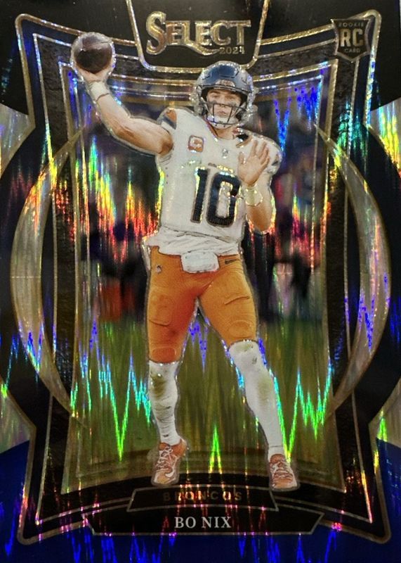 The Bo Nix 2024 Select #30 Concourse Black & Blue Shock Rookie card in Raw condition has moved up $2.00 (+40.0%) in the last 30 days and was last sold for $7.00 .