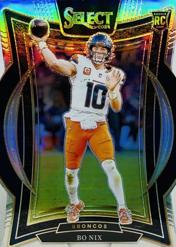 2024 Panini Select - Concourse Bo Nix #30 Silver Prizm Die-Cut RC Denver Broncos