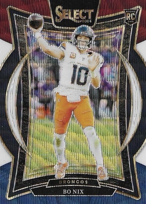 Bo Nix 2024 Select Concourse Level Tri-Color Prizm RC Broncos /299