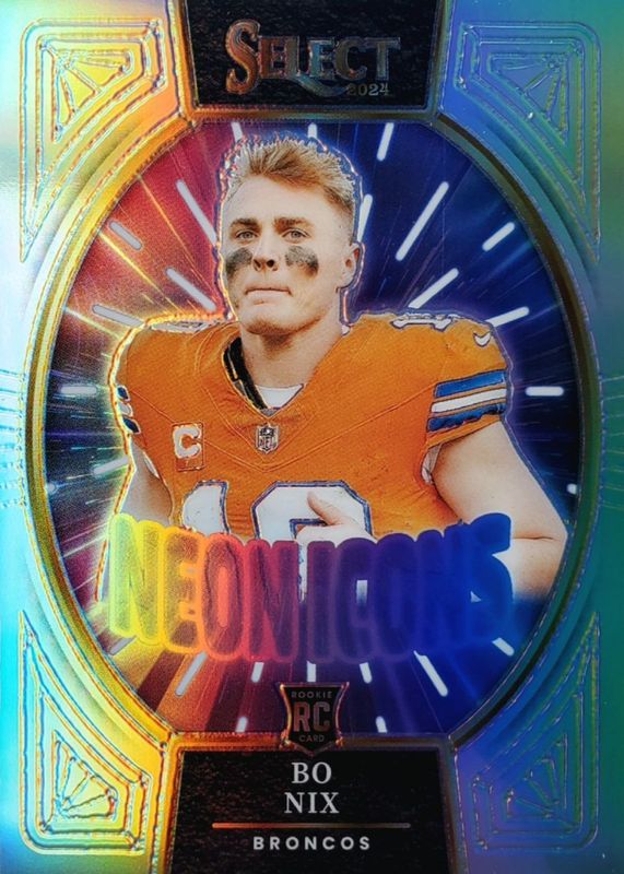 2024 Panini Select Bo Nix Rookie Neon Icons Silver Prizm Broncos A407